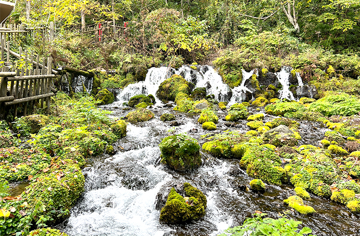羊蹄山の雪解け水が勢いよく湧き出ています。