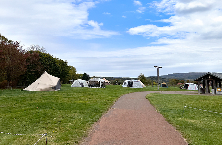 芝生がきれいに整備されていて、テント同士の距離もしっかり確保できます。