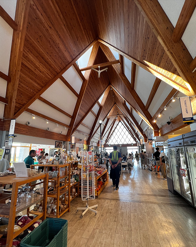 木の梁がリズミカルに並び、自然光が心地よく差し込んでいました。