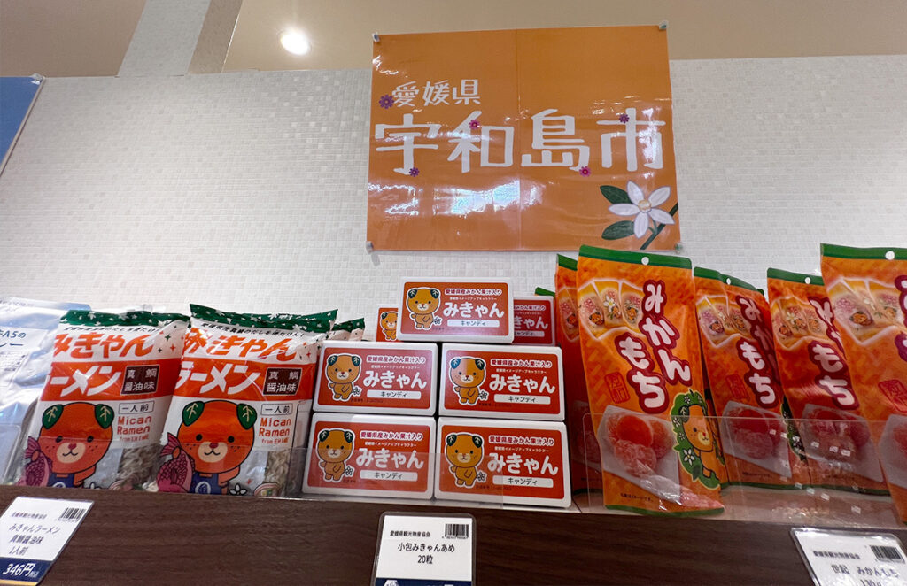 さらに目を引くのが、姉妹都市・愛媛県宇和島市の物産コーナー。
